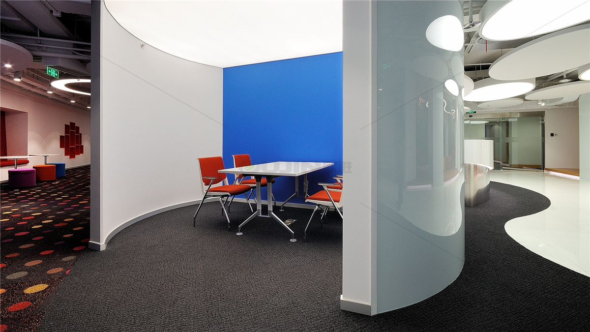接待區(qū)的宗旨是為客戶與員工提供一個(gè)休閑平等的溝通合作平臺(tái),而非我們通常所熟知的會(huì)議室類型。在一個(gè)開放的休閑空間里混合布局了公共休閑沙發(fā)和創(chuàng)意茶幾。精美的手工制作以及功能配件。私密電話間和寧?kù)o的區(qū)域滿足必要的工作所需。